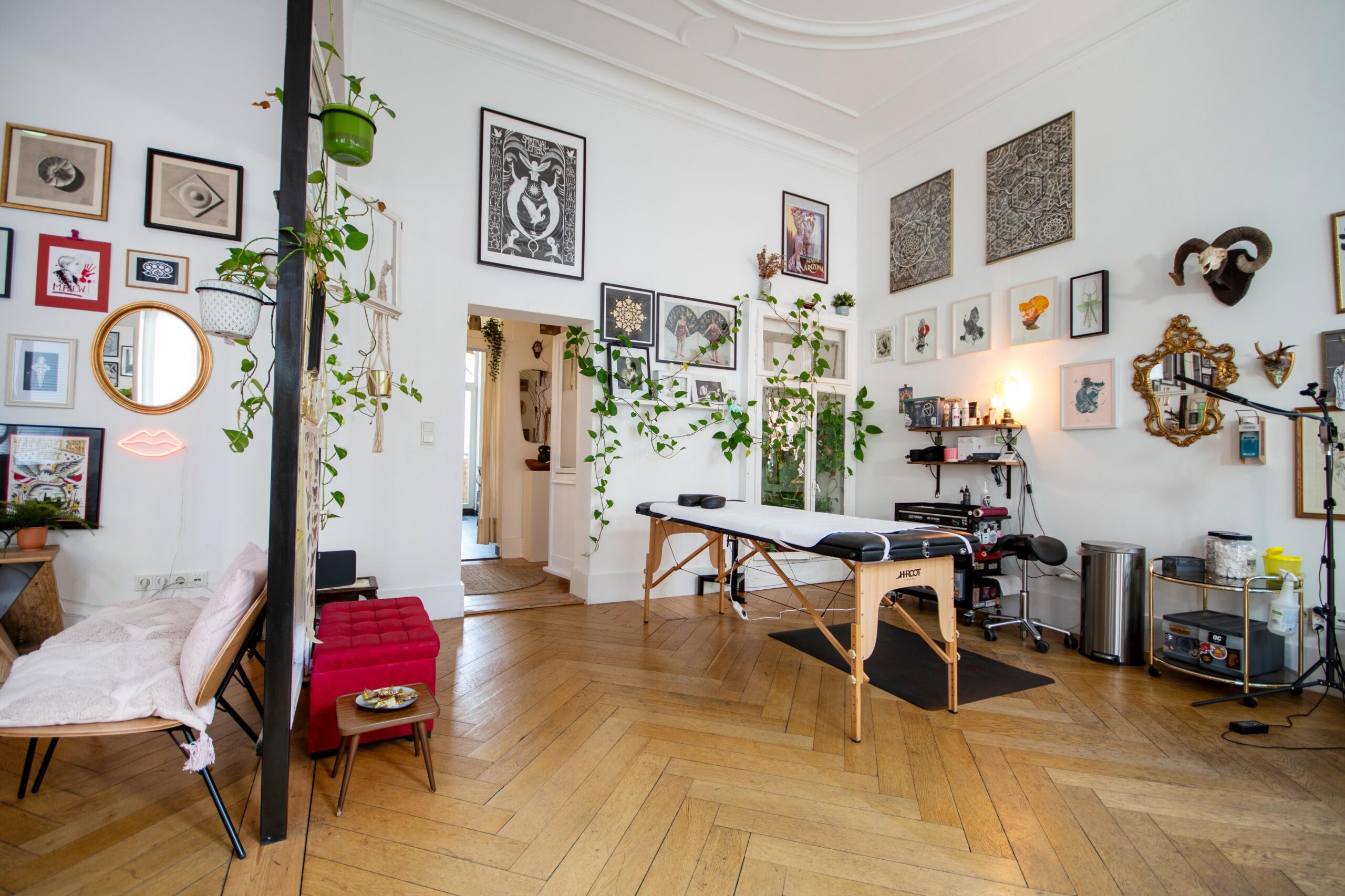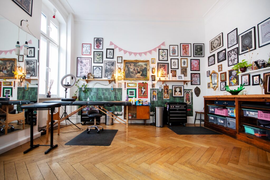 Our space features two fully equipped workstations in a bright, shared space, where collaboration and creativity thrive. We provide everything you need for a seamless tattoo experience, plus a cozy atmosphere with comfy seating, good music, and refreshments for you and your clients.